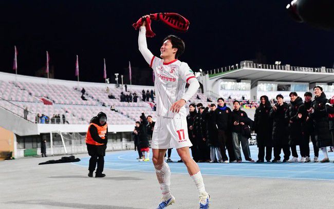 [인터풋볼=신동훈 기자(수원)] "유스에서 프로까지, 김규민." 부천FC1995는 8일 오후 7시 수원종합운동장에서 열린 '하나은행 K리그 2025' 승강 플레이오프(PO) 2차전에서 수원FC에 3-2 승리를 거뒀다. 1차전 1-0으로 이긴 부천은 통합 스코어 4-2로 이기면서 2007년 창단 처음으로 K리그1에 진출했다. 성골 유스 김규민이 서사를 만들었