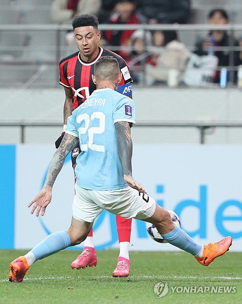 (서울=연합뉴스) 서명곤 기자 = 10일 서울 마포구 서울월드컵경기장에서 열린 2025-2026 아시아축구연맹(AFC) 챔피언스리그 엘리트(ACLE) 리그 스테이지 6차전 FC서울과 멜버른 시티(호주)의 경기에서 서울 린가드가 멜버른 헤르만 페레이라와 볼 경합을 하고 있다. 2025.12.10 seephoto@yna.co.kr ▶제보는 카카오톡 okjebo