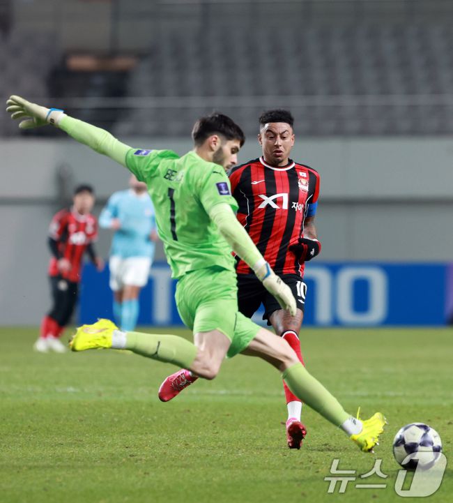 (서울=뉴스1) 이호윤 기자 = 10일 서울 마포구 월드컵로 서울월드컵경기장에서 열린 2025~2026시즌 아시아축구연맹(AFC) 챔피언스리그 엘리트(ACLE) 리그 스테이지 6차전 FC서울과 멜버른 시티 경기에서 멜버른 시티 비치가 루즈볼을 처리하고 있다. 2025.12.10/뉴스1 256@news1.kr Copyright ⓒ 뉴스1. All rights