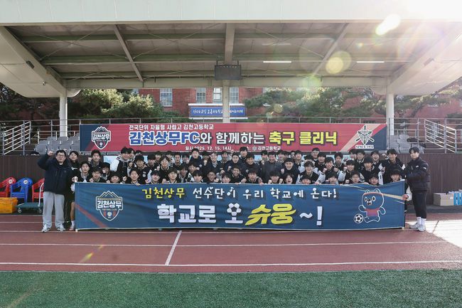 '정정용 감독 떴다!' 김천상무, 김천고 찾아 축구교실 진행...고재현·김주찬·백종범, 일일 코치로 변신