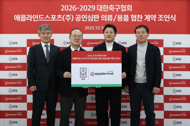 애플라인드 스포츠 주식회사(대표 홍연기, 이하 애플라인드)가 대한축구협회(KFA)와 공인심판 의류 및 용품 협찬 협약을 체결했다. 이번 협약에 따라 애플라인드는 대한축구협회가 주관·승인하는 각종 축구경기에 파견되는 공인심판을 대상으로 경기, 교육, 훈련 환경에 적합한 의류와 용품을 지원한다. 지난 몇년간 대한축구협회 공식 의류협찬사인 나이키 의류를 착용했다