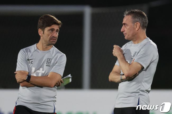 코스타 수석코치(왼쪽)와 파울루 벤투 감독. 2022.11.29/뉴스1 ⓒ News1 이광호 기자 (서울=뉴스1) 안영준 기자 = 파울루 벤투 사단 출신의 세르지우 코스타 감독이 한국 프로축구 K리그1 제주SK를 이끌 새 사령탑에 선임됐다. 2022 카타르 월드컵 조별리그 3차 포르투갈전에서 한국을 승리로 이끈 지도자이자, 한국 축구를 잘 아는 외국인 지도