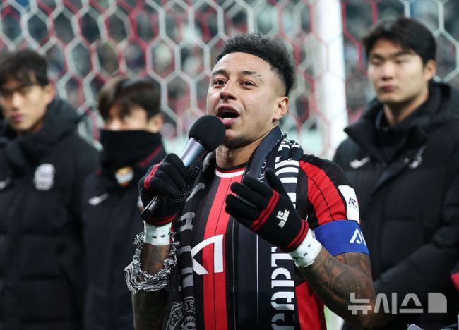 [서울=뉴시스] 김선웅 기자 = FC서울 린가드가 10일 서울 마포구 서울월드컵경기장에서 열린 2025-2026시즌 아시아축구연맹(AFC) 챔피언스리그 엘리트(ACLE) 리그 스테이지 6차전 FC서울 vs 멜버른 시티 경기 겸 서울 고별전을 마친 뒤 팬들에게 작별 인사를 하고 있다. 2025.12.10. mangusta@newsis.com [서울=뉴시스]