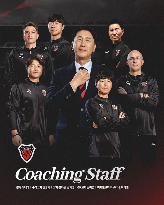 포항스틸러스가 2026시즌을 이끌 코칭스태프 구성을 마쳤다. 포항스틸러스는 박태하 감독과 함께 2026시즌을 이끌어갈 코칭스태프를 선임했다. 김성재 수석코치를 비롯해 김치곤 코치, 김이섭 골키퍼 코치, 바우지니 피지컬 코치와 하파엘 피지컬 코치가 지난 시즌에 이어 선수단을 지도한다. 올해 새롭게 김재성 코치가 합류하고, 이규용 코치는 유소년 스카우터로 보직