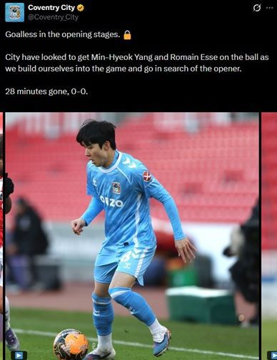 [서울=뉴시스] 잉글랜드 프로축구 챔피언십(2부 리그) 코벤트리 시티의 양민혁. (사진=코벤트리 시티 SNS 캡처) 2026.01.11. photo@newsis.com *재판매 및 DB 금지 [서울=뉴시스] 하근수 기자 = 축구 국가대표 '샛별' 양민혁이 잉글랜드 프로축구 챔피언십 코벤트리 시티에서 데뷔전을 치렀으나 패배를 막지 못했다. 코벤트리는 11일(