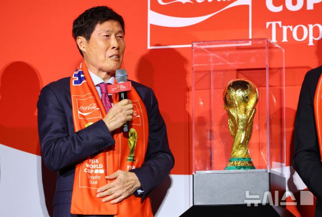 [서울=뉴시스] 황준선 기자 = 차범근 전 축구 국가대표팀 감독이 16일 오후 서울 용산구 CGV용산아이파크몰에서 열린 FIFA 월드컵 트로피 투어 미디어 간담회에서 질문에 답변하고 있다. 2026.01.16. hwang@newsis.com [서울=뉴시스]안경남 기자 = 4년 만에 한국을 찾은 국제축구연맹(FIFA) 월드컵 트로피를 본 차범근 전 축구대표팀