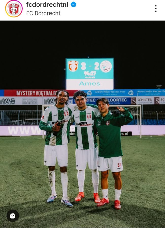 도르트레흐트 이적 이후 2경기 만에 데뷔골을 넣은 윤도영(오른쪽). 사진 | 도르트레흐트 SNS 절묘하게 휘어들어 간 코너킥 득점포다. 한국 축구의 또다른 유망주인 ‘19세 공격수’ 윤도영이 네덜란드 2부리그 도르트레흐트 이적 이후 2경기 만에 데뷔골을 쏘아 올렸다. 윤도영은 24일(한국시간) 네덜란드 도르트레흐트의 M-스코어스 스타디움에서 열린 2025-