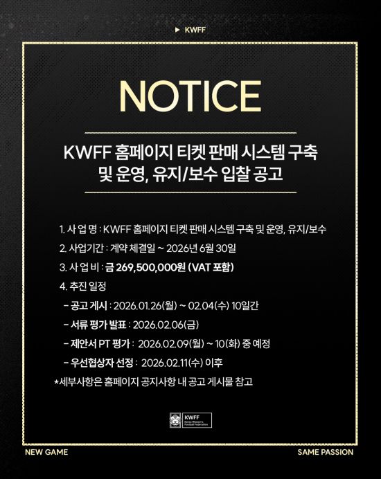 한국여자축구연맹이 홈페이지 티켓 판매 시스템 구축을 위해 전문 운영업체를 공개 모집한다. 연맹은 '홈페이지 티켓 판매 시스템 구축 및 운영·유지보수 사업' 입찰을 통해 온라인 기반 티켓 운영 환경을 고도화하고 데이터 기반 마케팅 체계를 강화할 수 있는 파트너사를 선정할 계획이다. 이번 사업은 현재 추진 중인 연맹 공식 홈페이지 개편·고도화 사업과 연계해 단
