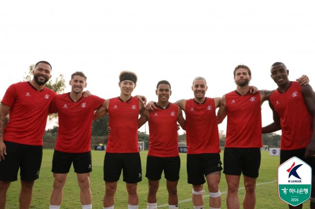 부천 가브리엘(왼쪽부터), 갈레고, 카즈, 티아깅요, 바사니, 패트릭, 몬타뇨. 사진 | 한국프로축구연맹 부천FC1995는 일찌감치 외국인 선수 7명 체제를 선택했다. K리그1(1부)은 이번시즌부터 외국인 선수 보유 제한을 풀었다. 대신 출전 명단과 출전할 수 있는 수는 5명으로 제한한다. K리그 팀의 아시아 무대 경쟁력을 높이기 위함이다. 확실한 자금력을