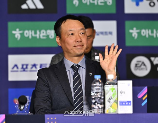 K리그2 천안 박진섭 감독이 25일 서울 홍은동 스위스 그랜드 호텔에서 열린 K리그 2026 개막 미디어데이에서 팬들에 인사를 하고 있다. 2026. 2. 25. 최승섭기자 thunder@sportsseoul.com [기사제보 news@sportsseoul.com] Copyright ⓒ 스포츠서울&sportsseoul.com