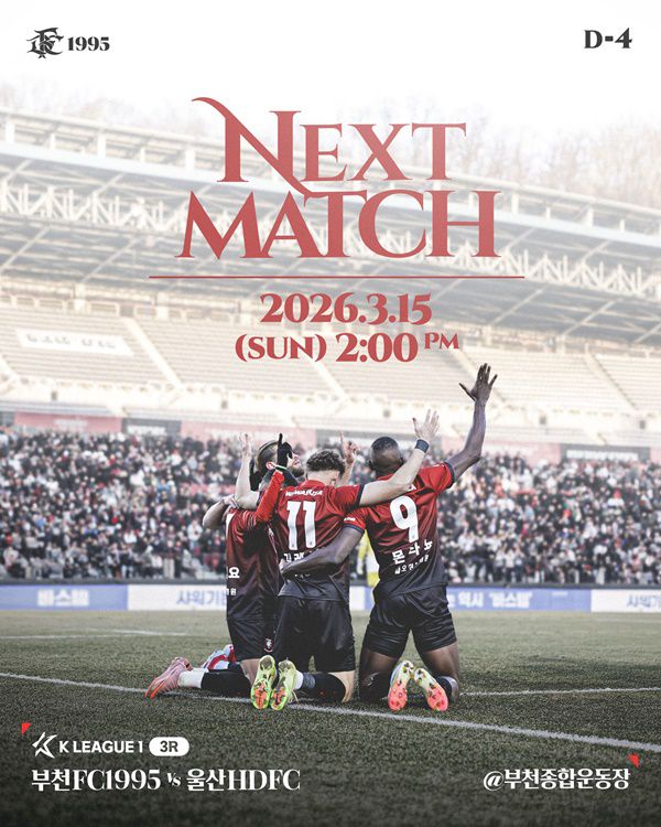 사진=부천 제공 부천FC1995가 오는 15일 오후 2시 부천종합운동장에서 열리는 '하나은행 K리그1 2026' 3라운드에서 울산 HD FC을 상대로 구단 역대 최다 무패 기록 경신에 도전한다. 부천은 지난 7일 대전하나시티즌과의 홈 개막전에서 1-1 무승부를 거두며 승점 1점을 얻었다. 몬타뇨가 얻어낸 페널티킥을 갈레고가 성공시키며 앞서 갔으나, 후반