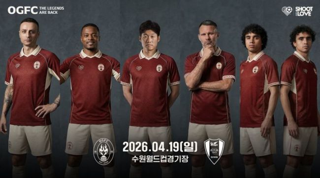 [서울=뉴시스] 프로축구 K리그2 수원삼성 레전드 팀과 맞붙는 OGFC. (사진=슛포러브 제공) 2026.03.17. photo@newsis.com *재판매 및 DB 금지 [서울=뉴시스] 김진엽 기자 = OGFC가 앞서 공개한 박지성, 리오 퍼디난드, 파트리스 에브라, 라이언 긱스에 이어, 디미타르 베르바토프, 루이 사하, 하파엘·파비우 다 실바 쌍둥이 형