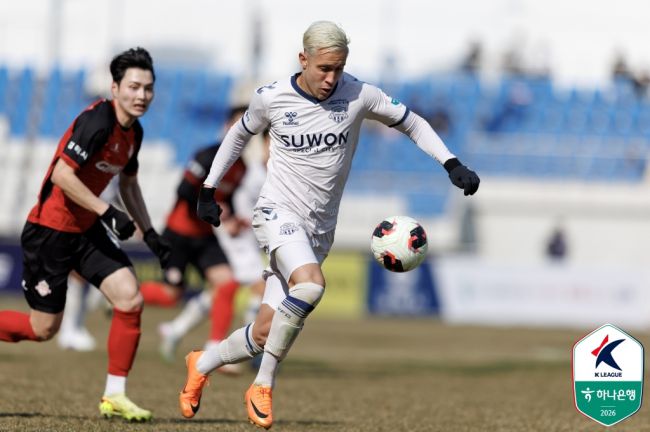 수원FC 프리조. 사진=한국프로축구연맹 제공 대구FC 세라핌. 사진=한국프로축구연맹 제공 수원 삼성 김준홍. 사진=한국프로축구연맹 제공 초반부터 뜨거운 3파전이다. 2026시즌 프로축구 K리그2가 ‘절대 3강’ 구도로 판이 짜이고 있다. 강력한 우승 후보로 꼽힌 수원FC와 대구FC, 수원 삼성이 나란히 개막 3연승을 달렸다. 승점 9로 순위표 최상단에 자리