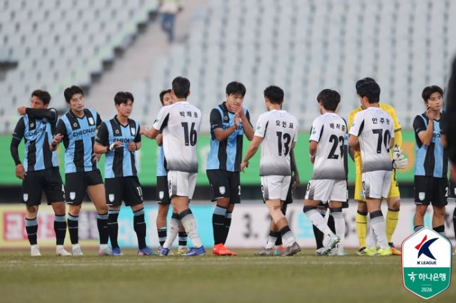 서울 이랜드, 에울레르 이탈 속 천안과 득점 없이 무승부…청주-안산도 1-1 무승부