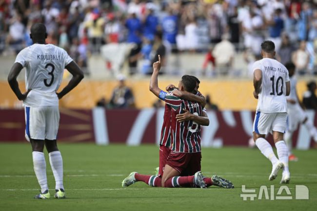 [올랜도=AP/뉴시스]플루미넨시, 클럽월드컵 4강행. 2025.07.04. [서울=뉴시스]안경남 기자 = 플루미넨시(브라질)가 돌풍의 팀 알힐랄(사우디아라비아)을 꺾고 2025 국제축구연맹(FIFA) 클럽월드컵 4강에 올랐다. 플루미넨시는 5일(한국 시간) 미국 플로리다주 올랜도의 캠핑 월드 스타디움에서 열린 대회 8강전에서 알힐랄에 2-1로 승리했다. 조