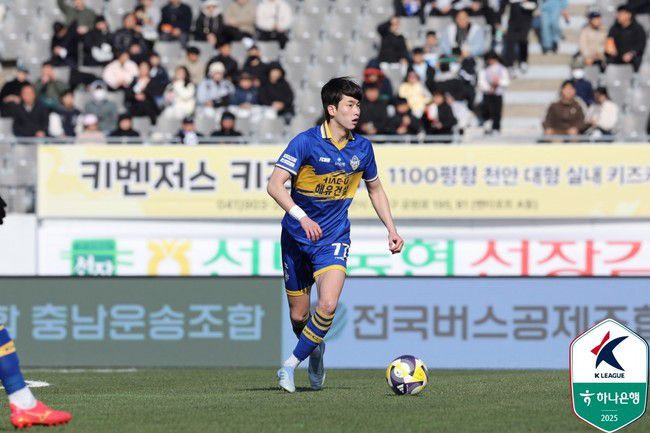 [인터풋볼=신동훈 기자(아산)] 정마호는 이번엔 미드필더로 뛰면서 활약을 이어갔다. 여러 클럽들의 관심이 이어지는 가운데 멀티성을 입증했다. 충남아산은 5일 오후 7시 이순신종합운동장에서 열린 '하나은행 K리그2 2025' 19라운드에서 수원 삼성에 2-3으로 패했다. 충남아산은 7위에 머물렀다. 패배에도 정마호는 다시 한번 멀티성을 입증했다. 이날 정마호