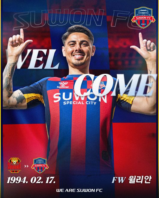 [공식발표] '안데르손 OUT' 수원FC, 대체자로 'K리그 50골' 윌리안 영입...이시영·한찬희 이어 여름 3호 영입