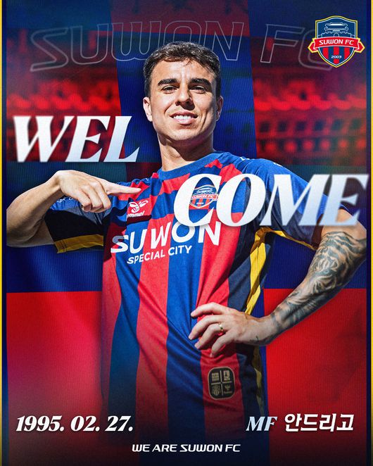 [공식발표] 수원FC, '플레이메이커' 안드리고 영입..."수원시는 1949년 8월 15일 읍에서 시로 승격됐다" 등번호 15번