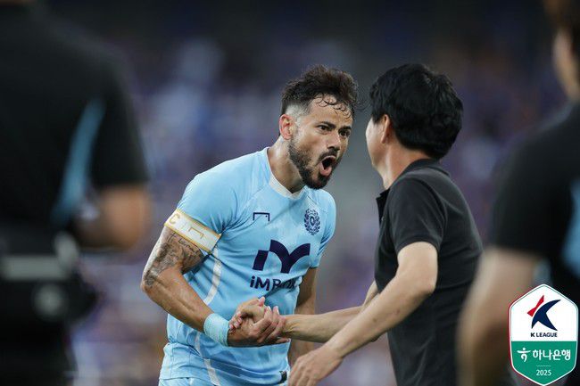[인터풋볼] 신동훈 기자 = 세징야가 멀티골을 기록하면서 김병수 감독에게 미소를 선사했다. 울산 HD와 대구C는 12일 오후 7시 울산문수축구경기장에서 열린 '하나은행 K리그1 2025' 21라운드 순연 경기에서 2-2로 비겼다. [선발 라인업] 울산은 3-4-3 포메이션으로 나왔다. 문정인, 김영권, 트로야크, 이재익, 박민서, 보야니치, 고승범, 윤재석