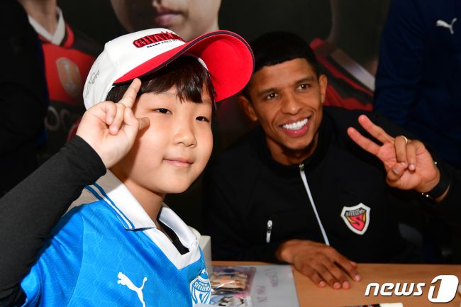 올스타전 팬 투표 1위를 차지한 오베르단(오른쪽) 2024.2.28/뉴스1 ⓒ News1 최창호 기자 (서울=뉴스1) 안영준 기자 = 프로축구 K리그1 포항 스틸러스의 브라질 출신 미드필더 오베르단이 K리그 올스타 '팀 K리그' 팬 투표 1위를 차지한 뒤 "얼떨떨하지만 영광스러운 일"이라면서 "뉴캐슬 유나이티드(잉글랜드)를 상대로 K리그의 위상을 알리겠다"