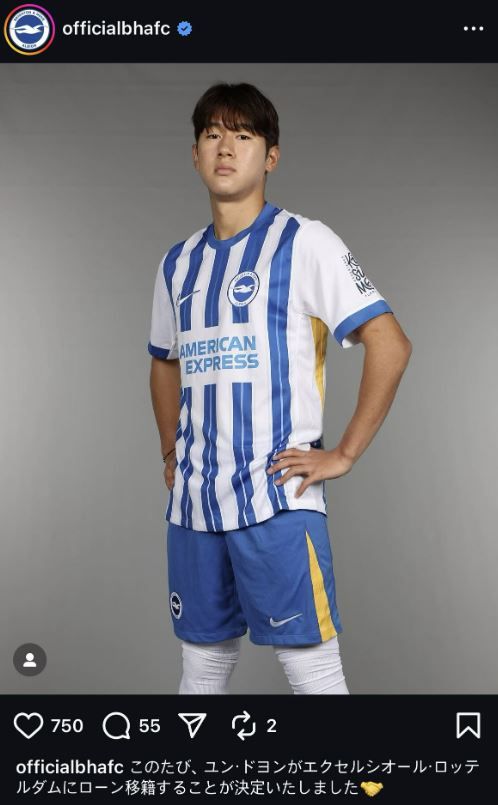 [사진] 브라이튼 앤 호브 알비온 공식 소셜 미디어 프리미어리그 브라이튼 앤 호브 알비온이 유망주 윤도영(19)의 임대를 발표하는 과정에서 예상치 못한 실수를 저질렀다. 공식 채널에 그의 이적 소식을 한국어가 아닌 일본어로 게시한 것이다. 브라이튼은 16일(이하 한국시간) 구단 공식 홈페이지를 통해 "윤도영이 네덜란드 에레디비시 소속 엑셀시오르 로테르담으로