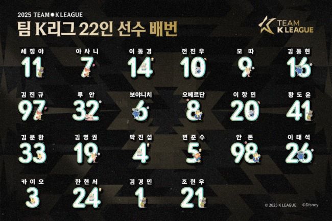 [공식발표] 뉴캐슬 상대할 김판곤-이정효의 팀 K리그, 최종 22인 확정...전진우 10번, 세징야 11번