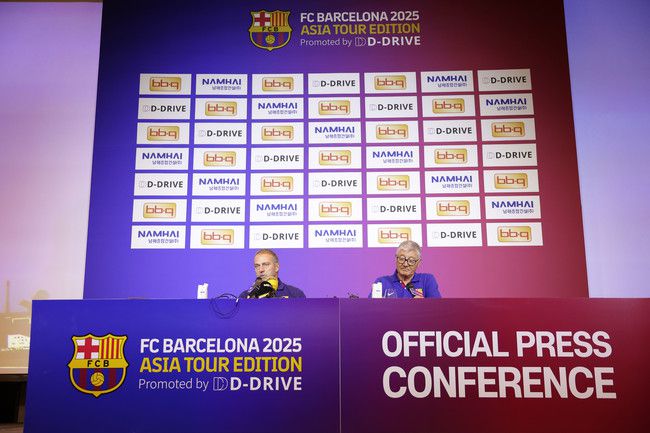 [인터풋볼=주대은 기자(종로)] 바르셀로나가 선수 없이 기자회견에 임했다. 바르셀로나는 30일 서울 포시즌스호텔에서 열린 '바르셀로나 2025 아시아 투어' 기자회견을 소화했다. 바르셀로나는 31일 오후 8시 서울월드컵경기장에서 FC서울, 8월 4일 오후 8시 대구스타디움에서 대구FC와 경기를 치른다. 바르셀로나는 세계 최고의 팀이다. 1899년 창단 이후
