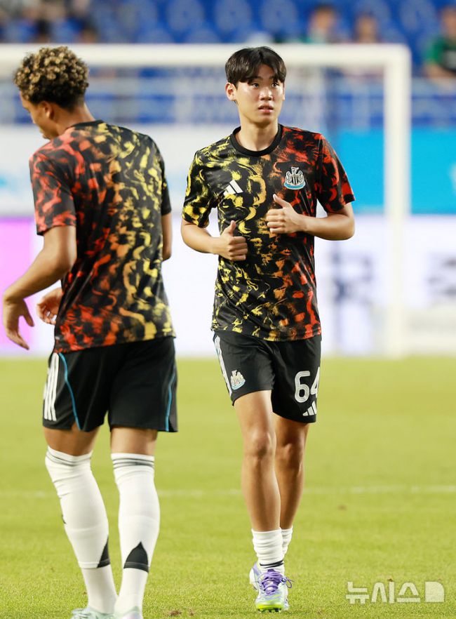 [수원=뉴시스] 이영환 기자 = 30일 오후 경기 수원시 팔달구 수원월드컵경기장에서 진행되는 2025 쿠팡플레이 시리즈 뉴캐슬 유나이티드와 팀 K리그의 경기를 앞두고 뉴캐슬 박승수가 몸을 풀고 있다. 2025.07.30. 20hwan@newsis.com [사진 영상 제보받습니다] 공감언론 뉴시스가 독자 여러분의 소중한 제보를 기다립니다. 뉴스 가치나 화제성