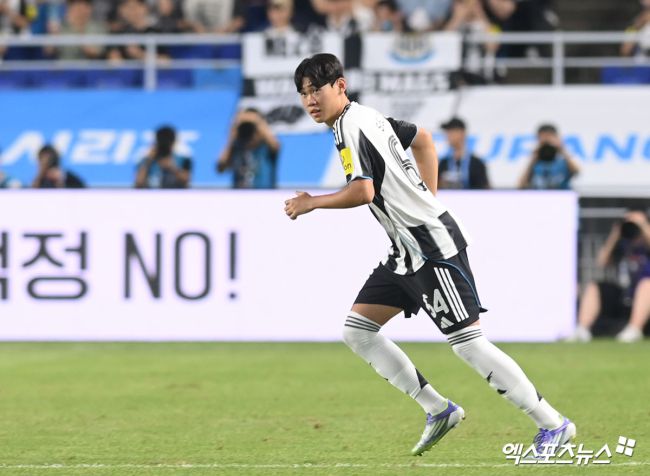 30일 오후 수원월드컵경기장에서 '2025 쿠팡플레이 시리즈' 팀 K리그와 뉴캐슬 유나이티드 FC의 경기, 뉴캐슬 박승수가 후반 교체 투입되고 있다. 고아라 기자 iknow@xportsnews.com
