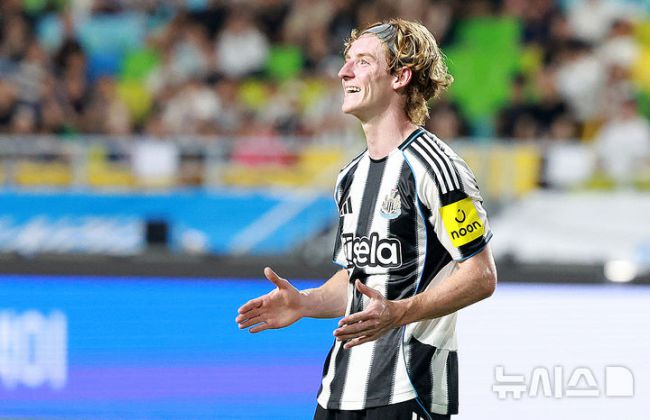 [수원=뉴시스] 이영환 기자 = 30일 오후 경기 수원시 팔달구 수원월드컵경기장에서 열린 2025 쿠팡플레이 시리즈 뉴캐슬 유나이티드와 팀 K리그의 경기, 뉴캐슬 앤서니 고든이 슛을 시도한 후 아쉬워 하고 있다. 2025.07.30. 20hwan@newsis.com [서울=뉴시스] 하근수 기자 = 잉글랜드 프로축구 프리미어리그(EPL) 뉴캐슬 유나이티드 '