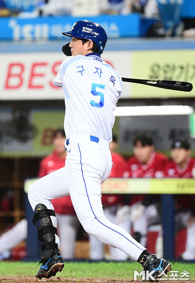13일 오후 대구삼성라이온즈파크에서 ‘2025 신한 SOL Bank KBO 포스트시즌’ SSG 랜더스와 삼성 라이온즈의 준플레이오프(5전 3선승제) 3차전이 열렸다. 7회말 1사에서 삼성 구자욱이 중전안타를 치고 있다. 대구=김영구 MK스포츠 기자 [ⓒ MK스포츠, 무단전재 및 재배포 금지]