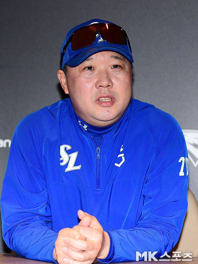 17일 오후 대전 한화생명볼파크에서 ‘2025 신한 SOL Bank KBO 포스트시즌’ 삼성 라이온즈와 한화 이글스의 플레이오프(5전 3선승제) 1차전이 열린다. 경기에 앞서 삼성 박진만 감독이 인터뷰를 하고 있다. 대전=김영구 MK스포츠 기자 [ⓒ MK스포츠, 무단전재 및 재배포 금지]