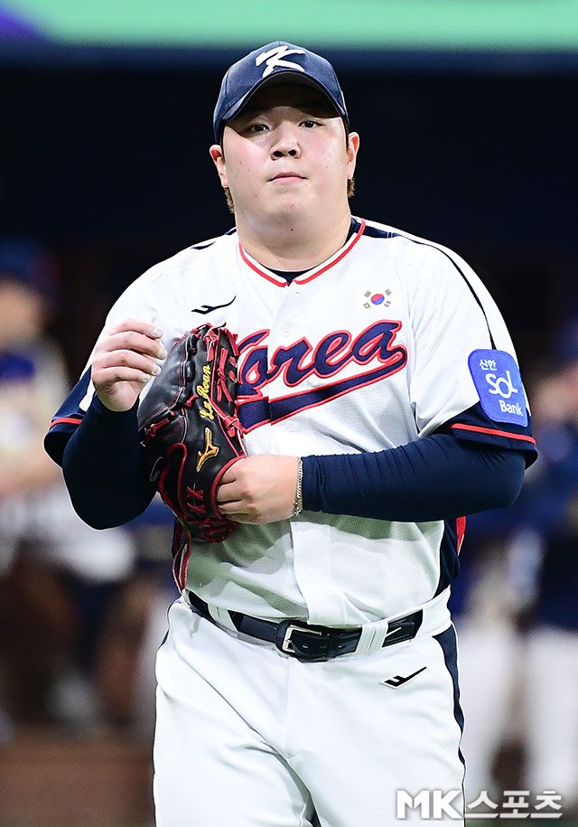 8일 오후 서울 고척스카이돔에서 ‘2025 NAVER K-BASEBALL SERIES’ 한국과 체코의 평가전이 열렸다. 7회초에 등판한 대표팀 이로운이 무실점 피칭을 펼친 후 더그아웃으로 향하고 있다. 고척(서울)=김영구 MK스포츠 기자 [ⓒ MK스포츠, 무단전재 및 재배포 금지]