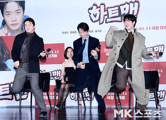 배우 권상우, 박지환, 표지훈이 11일 오전 서울 광진구 롯데시네마 건대입구에서 진행된 영화 ‘하트맨’(최원섭 감독) 제작보고회에 참석해 포즈를 취하고 있다. 내년 1월 14일 개봉하는 ‘하트맨’은 돌아온 남자 승민(권상우)이 다시 만난 첫사랑을 놓치지 않기 위해 고군분투하지만, 그녀에게 절대 말할 수 없는 비밀이 생기며 벌어지는 코미디다. 자양동(서울)=