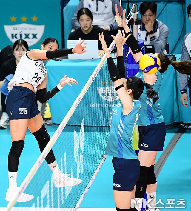 23일 오후 서울 장충체육관에서 ‘진에어 2025~2026 V리그’ 여자부 GS칼텍스와 한국도로공사 경기가 열렸다. GS칼텍스는 7승 8패 승점 22점으로 리그 4위, 도로공사는 13승 3패 승점 35점으로 리그 1위에 올라있다. 도로공사 타나차가 상대 블로커를 앞에 두고 스파이크를 날리고 있다. 장충동(서울)=김영구 MK스포츠 기자 [ⓒ MK스포츠, 무단