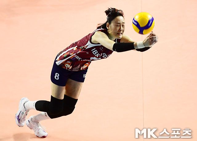 24일 오후 인천 삼산월드체육관에서 ‘진에어 2025~2026 V리그’ 여자부 흥국생명과 IBK기업은행 경기가 열렸다. 흥국생명은 8승 8패 승점 25점으로 리그 3위, 기업은행은 6승 10패 승점 21점으로 5위다. 기업은행 임명옥이 볼을 살려내고 있다. 인천=김영구 MK스포츠 기자 [ⓒ MK스포츠, 무단전재 및 재배포 금지]