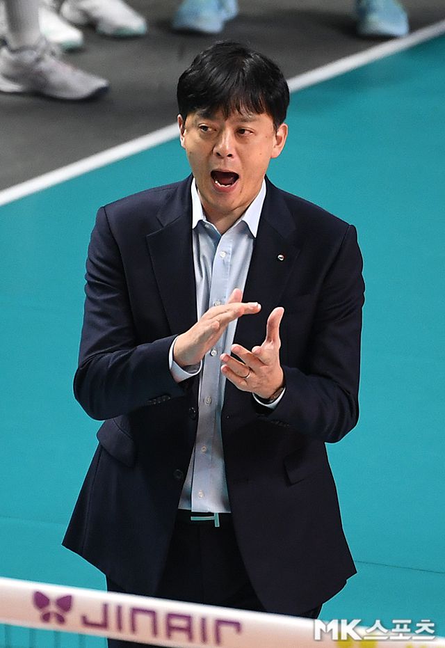 27일 서울 장충체육관에서 프로배구 2025-2026 V리그 여자부 GS칼텍스와 흥국생명의 경기가 열렸다. GS칼텍스 이영택 감독이 득점에 기뻐하고 있다. 사진=천정환 기자 장충(서울)=천정환 MK스포츠 기자 [ⓒ MK스포츠, 무단전재 및 재배포 금지]