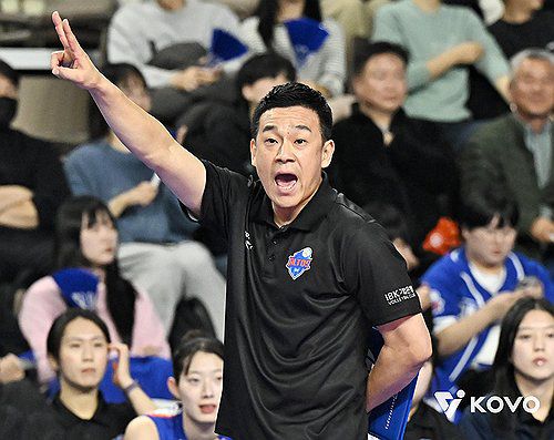 (서울=연합뉴스) 여자 프로배구 IBK기업은행의 사령탑에 오른 '영원한 리베로' 여오현 감독대행이 26일 경기 화성종합체육관에서 열린 흥국생명과 2025-2026 V리그 홈경기에서 선수들에게 지시를 하고 있다. 2025.11.27 [[한국배구연맹 제공. 재판매 및 DB 금지] photo@yna.co.kr ▶제보는 카카오톡 okjebo ▶연합뉴스 앱 지금 바
