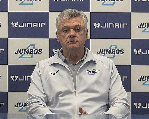 인터뷰하는 헤난 달 조토 대한항공 감독