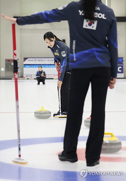 (진천=연합뉴스) 이지은 기자 = 2026 밀라노·코르티나담페초 동계올림픽을 앞두고 27일 충북 진천선수촌 컬링장에서 컬링대표팀의 김민지(가운데) 등이 훈련을 하고 있다. 2026.1.27 jieunlee@yna.co.kr ▶제보는 카카오톡 okjebo ▶연합뉴스 앱 지금 바로 다운받기~ ▶네이버 연합뉴스 채널 구독하기 <저작권자(c) 연합뉴스, 무단 전재