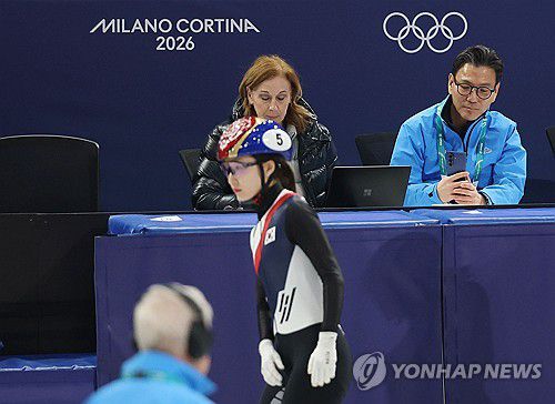 (밀라노=연합뉴스) 이지은 기자 = 김재열 국제올림픽위원회(IOC) 집행위원 겸 국제빙상경기연맹(ISU) 회장이 16일(현지시간) 이탈리아 밀라노 아이스스케이팅 아레나에서 열린 2026 밀라노-코르티나담페초 동계올림픽 쇼트트랙 여자 1000m 준준결승에 나선 최민정을 휴대전화로 사진찍고 있다. 2026.2.16 jieunlee@yna.co.kr ▶제보는 카