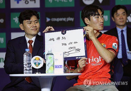 (서울=연합뉴스) 김성민 기자 = 강원 FC 정경호 감독과 서민우가 25일 서울 서대문구 스위스 그랜드호텔 컨벤션센터에서 열린 '하나은행 K리그 2026 개막 미디어데이'에서 출사표를 밝히고 있다. 2026.2.25 ksm7976@yna.co.kr ▶제보는 카카오톡 okjebo ▶연합뉴스 앱 지금 바로 다운받기~ ▶네이버 연합뉴스 채널 구독하기 <저작권자(