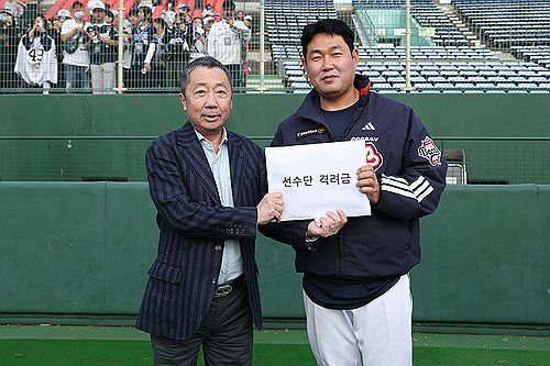 박정원 두산그룹 회장, 야구단 일본 전지훈련 격려 방문