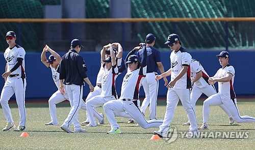 몸푸는 야구 대표팀 선수들