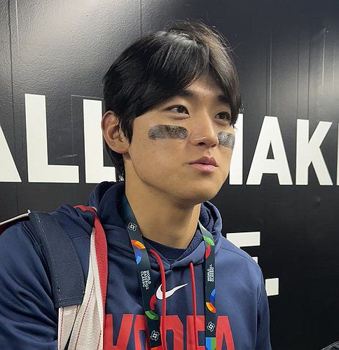취재진과 인터뷰하는 한국 야구 대표팀 김도영