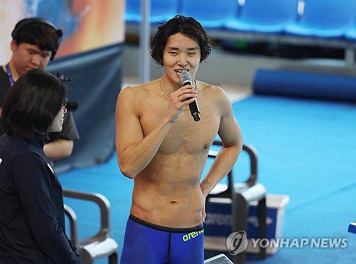 (김천=연합뉴스) 김현태 기자 = 한국 수영 중장거리 간판 김우민(강원특별자치도청)이 25일 경북 김천실내수영장에서 열린 2026 KB금융 코리아 스위밍 챔피언십 남자 자유형 800m 결승에서 우승한 뒤 밝은 표정으로 인터뷰하고 있다. 2026.3.25 mtkht@yna.co.kr ▶제보는 카카오톡 okjebo ▶연합뉴스 앱 지금 바로 다운받기~ ▶네이버