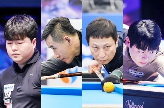 2025년을 마무리하는 당구축제 ‘빌리어드 페스티벌2025’ 캐롬 D1 남자 4강전이 (왼쪽부터) 조명우-김현종, 박상준-정연철 대결로 압축됐다. (사진=대한당구연맹) 27일 대전드림아레나에서, ‘빌페’ 캐롬 D1 男8강전, 조명우, 조영윤에 세트스코어 2:0 승 김현종은 안지훈 제압, 정연철과 박상준은 2:1 역전승대한당구연맹이 주최하는 연말 당구 축제