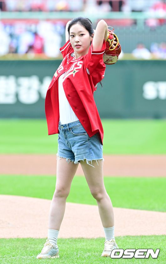 11일 인천 SSG랜더스필드에서 ‘2025 신한 SOL뱅크 KBO리그’ 준플레이오프(5전 3선승제) 2차전 SSG 랜더스와 삼성 라이온즈의 경기가 열렸다. SSG는 김건우, 삼성은 헤르손 가라비토를 선발 투수로 내세웠다. 배우 최희진이 시구를 하고 있다. 2025.10.11 / dreamer@osen.co.kr