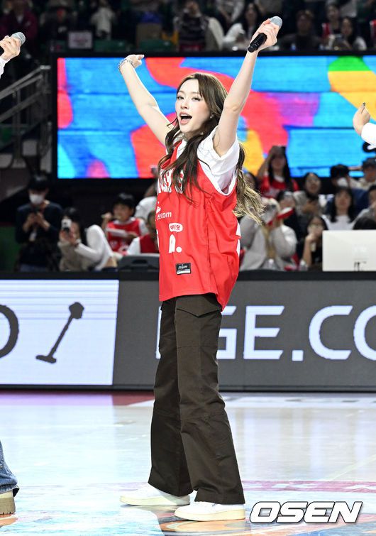SK가 ‘통신사 대전’에서 승리했다. 서울 SK는 17일 잠실학생체육관에서 열린 2025-2026 LG전자 프로농구 정규시즌 수원 KT와 2라운드 맞대결에 85-83으로 이겼다. 하프타임 때 그룹 피프티피프티 문샤넬이 공연을 펼치고 있다. 2025.11.17 /sunday@osen.co.kr