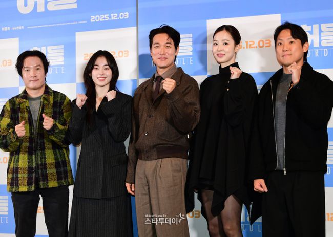 배우 이중옥(왼쪽부터), 권희송, 김영재, 최예빈, 한상욱 감독. 영화 ‘허들’의 언론시사회가 18일 오후 용산 CGV에서 열렸다. 이날 시사회와 기자간담회에는 출연배우 최예빈, 김영재, 권희송, 이중옥과 한상욱 감독 등이 참석했다. [ⓒ 매일경제 & mk.co.kr, 무단 전재, 재배포 및 AI학습 이용 금지]